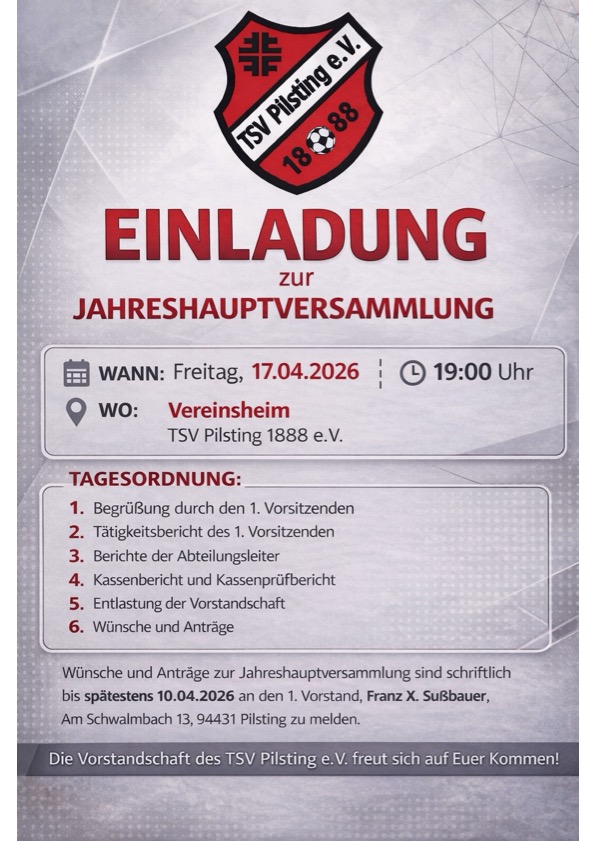 Einladung zur Jahreshauptversammlung Freitag, 17. April 2026